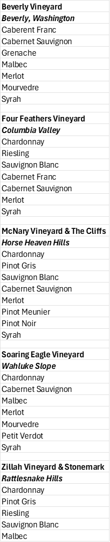 Diverse Varieties & AVAs: We farm five estate vineyards across five of the best wine regions in Washington State. This diversity of terroir allows us to cater to a range of winemaking styles.